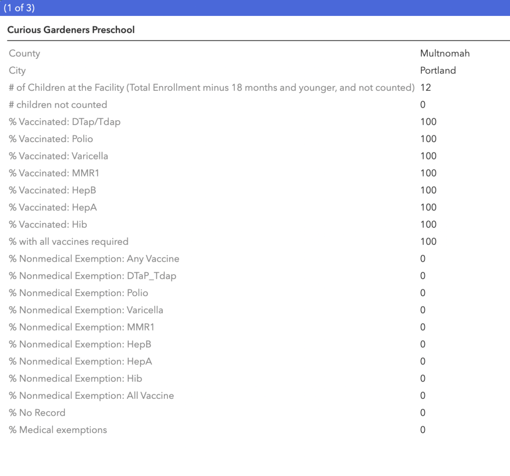 - In accordance with Oregon State Law, all students attending Curious Gardeners Preschool must be fully immunized.